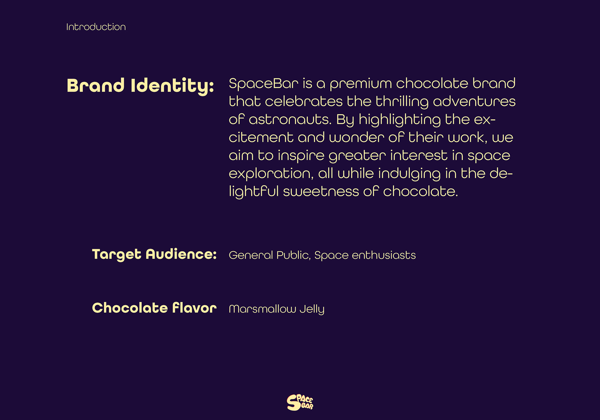 Spacebar is a cosmic-themed chocolate brand that takes you on a journey beyond Earth. This project is inspired by space exploration, blending adventure and indulgence in every bite.